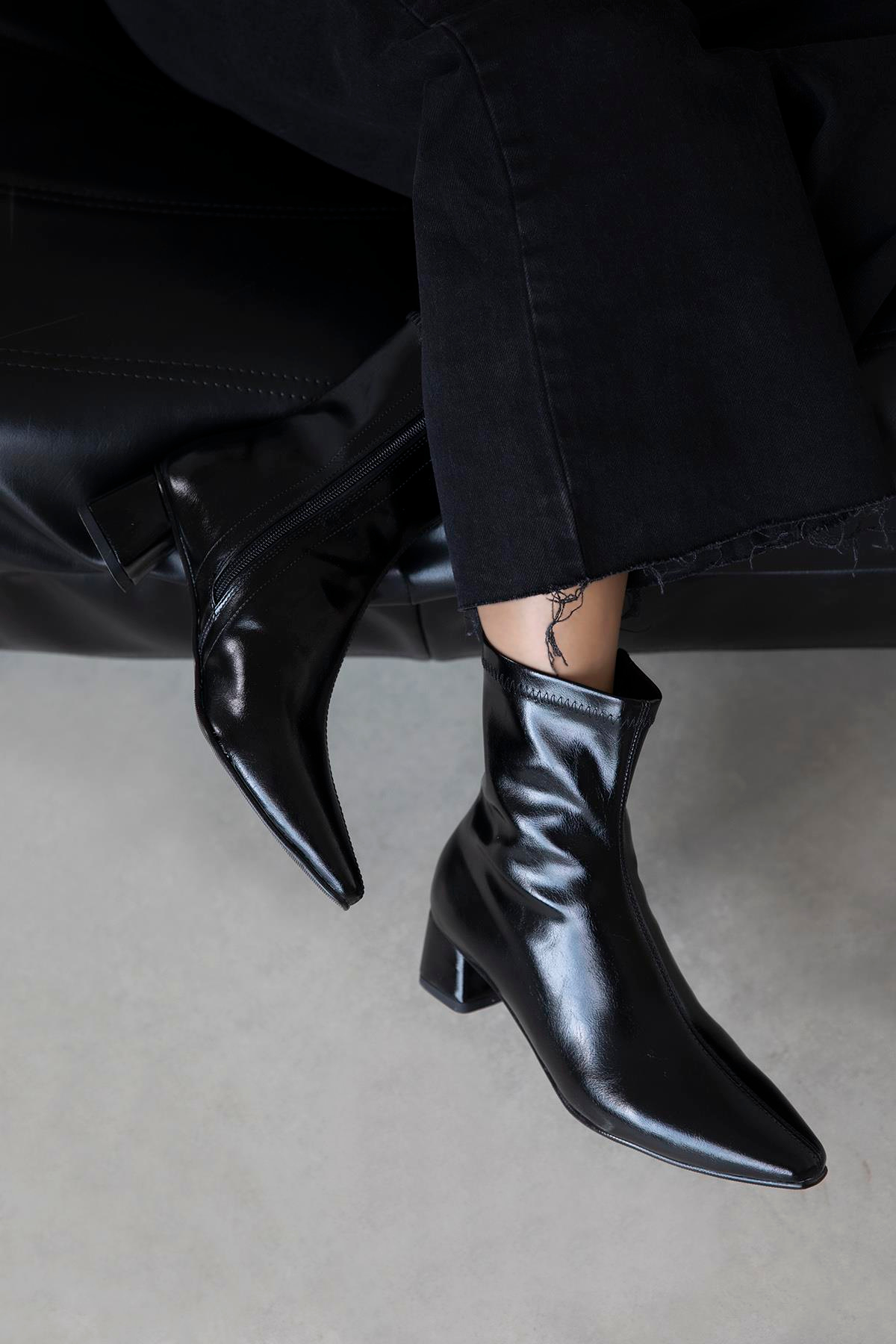 Amor Kadın Küt Kalıp Kırışık Deri Bot Siyah