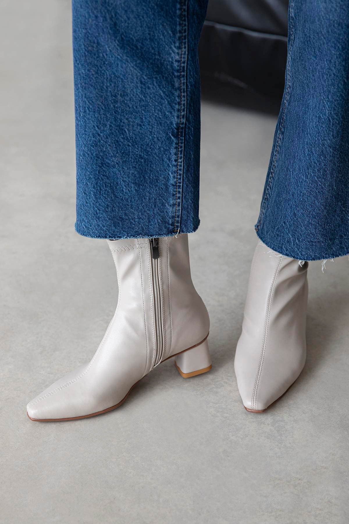 Amor Kadın Streç Küt Kalıp Deri Bot Bej