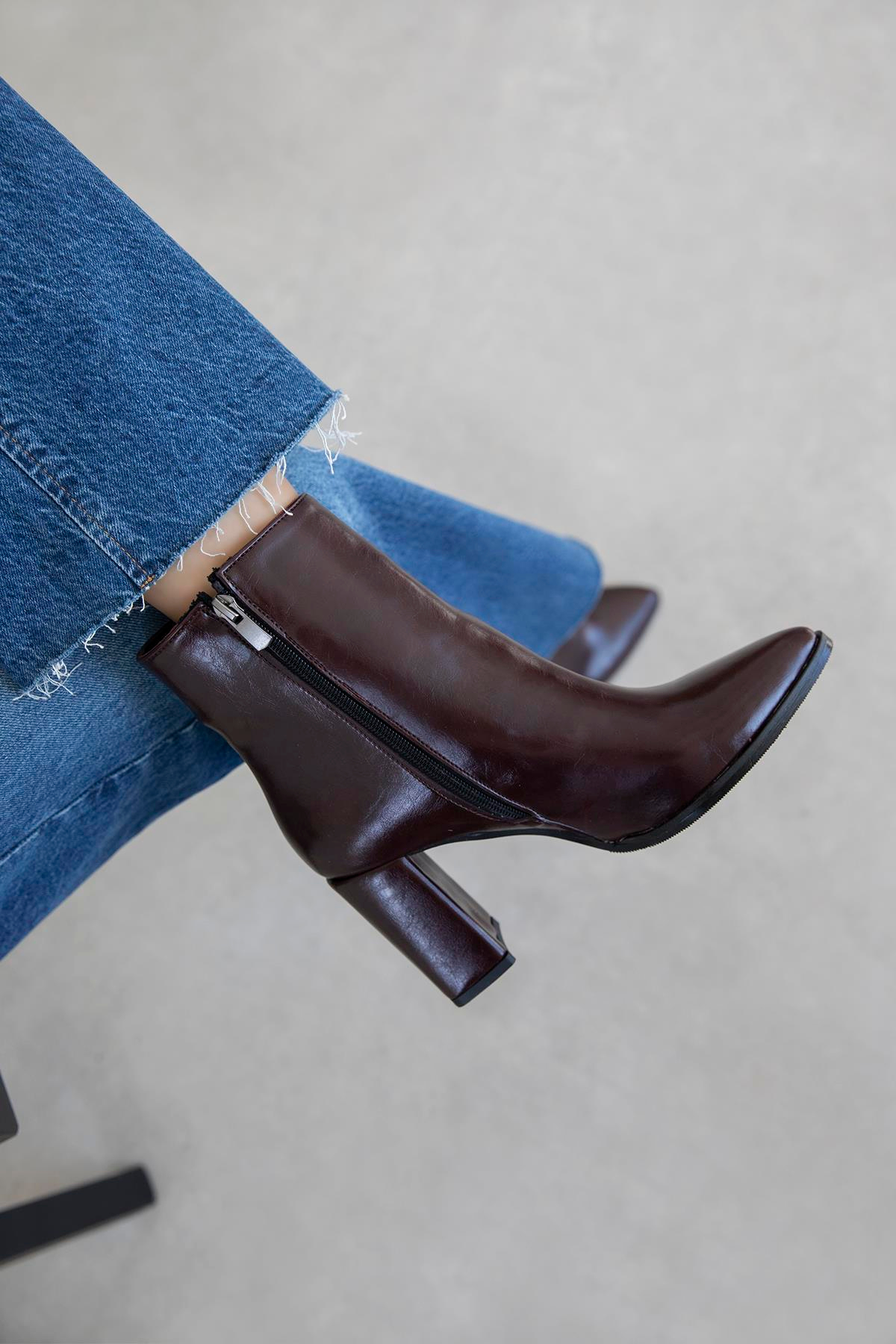 Fergal Kadın Topuklu Kırışık Deri Bot Bordo (BT7400KŞ)