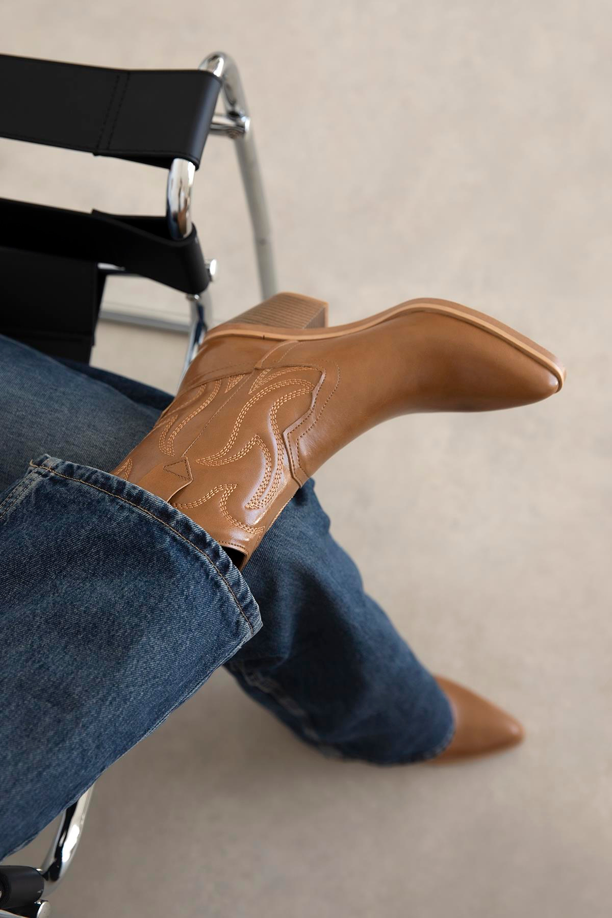 Hadley Kadın Kırışık Deri Topuklu Bot CAMEL (BT4700)