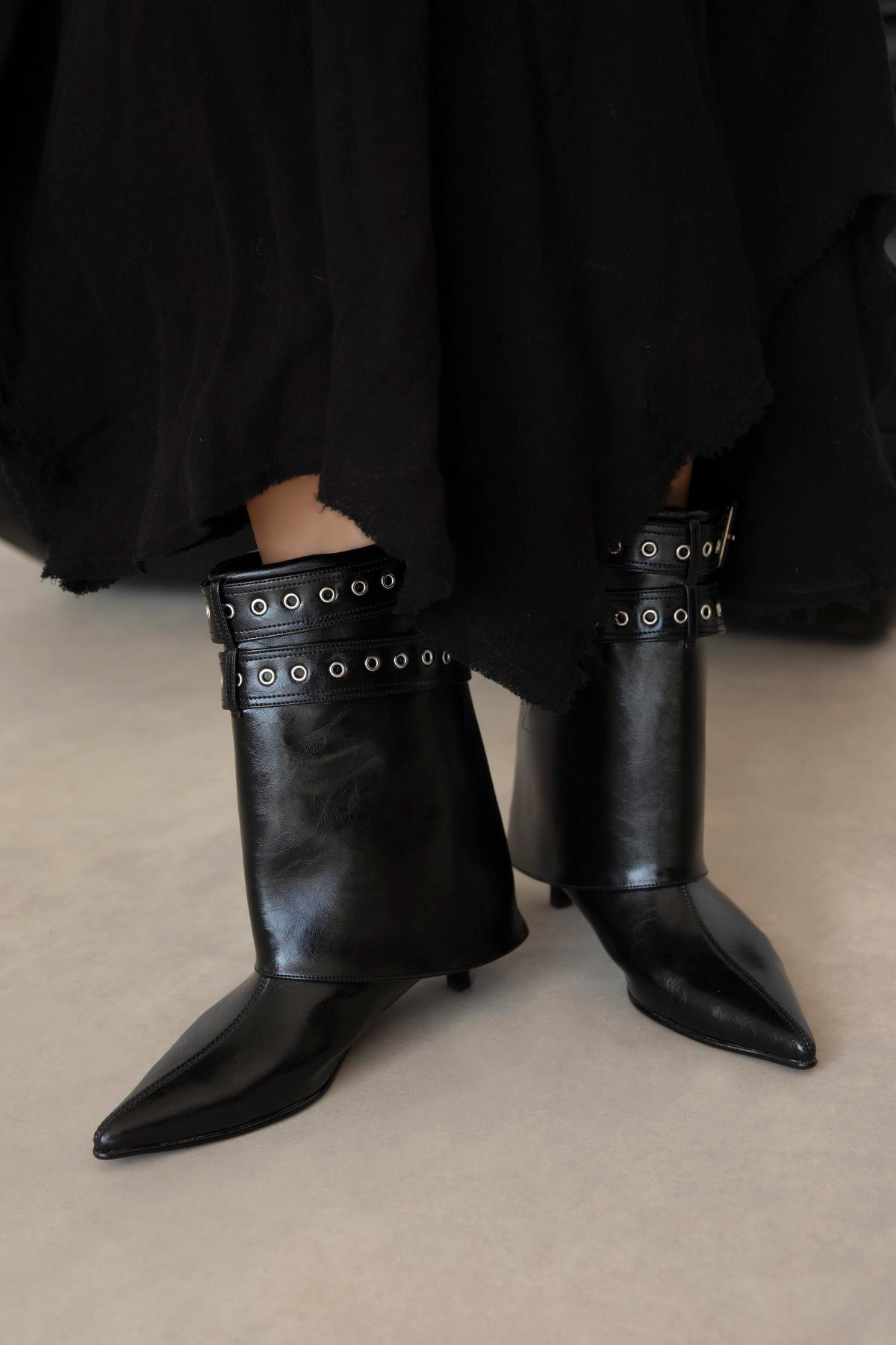 Katy Kadın Aksesuar Detay Kırışık Deri Bot Siyah
